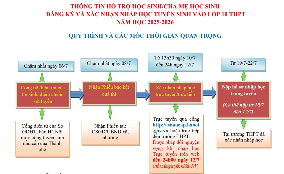 Hà Nội: Thông tin về Quy trình và các mốc thời gian hỗ trợ học sinh và cha mẹ học sinh xác nhận nhập học vào lớp 10 trung học phổ thông năm học 2025-2026
