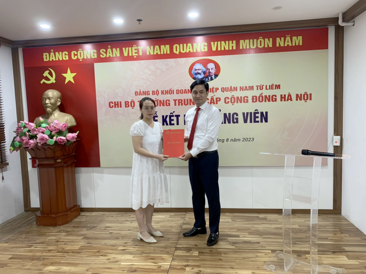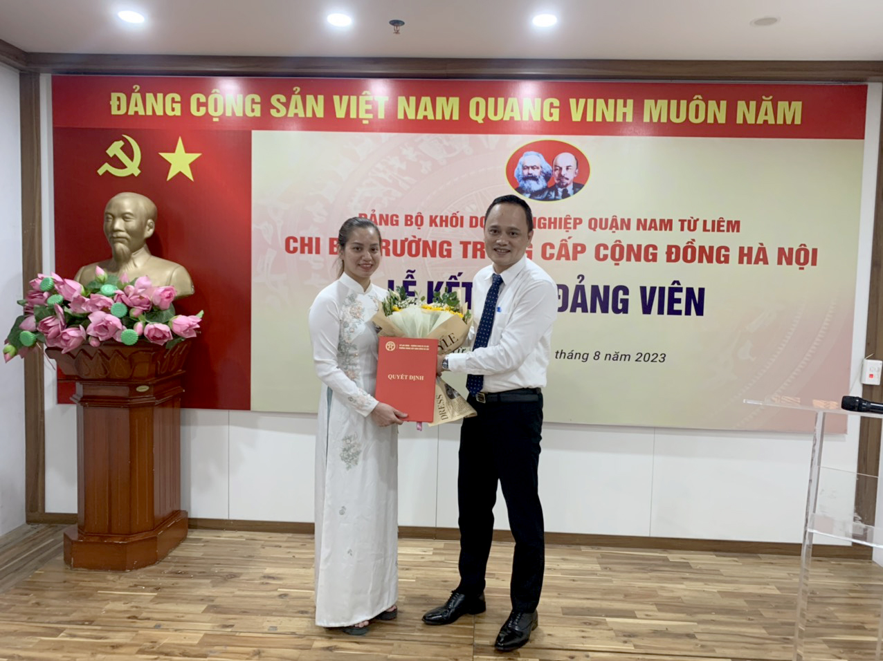 Xác định bồi dưỡng, phát triển đảng viên mới là nhiệm vụ quan trọng và có ý nghĩa trong công tác xây dựng Đảng, góp phần phát triển, nâng cao chất lượng và sức chiến đấu của tổ chức cơ sở Đảng nói chung và các cá nhân đảng viên nói riêng, trong thời gian qua, được sự giúp đỡ của Chi bộ Trường Trung cấp Cộng đồng Hà Nội và sự nỗ lực phấn đấu của bản thân 02 quần chúng, cũng như sự cố gắng vượt qua thử thách của 01 đồng chí đã được Đảng ủy khối Doanh nghiệp quận Nam Từ Liêm quyết định kết nạp và công nhận chính thức vào Đảng Cộng sản Việt Nam.